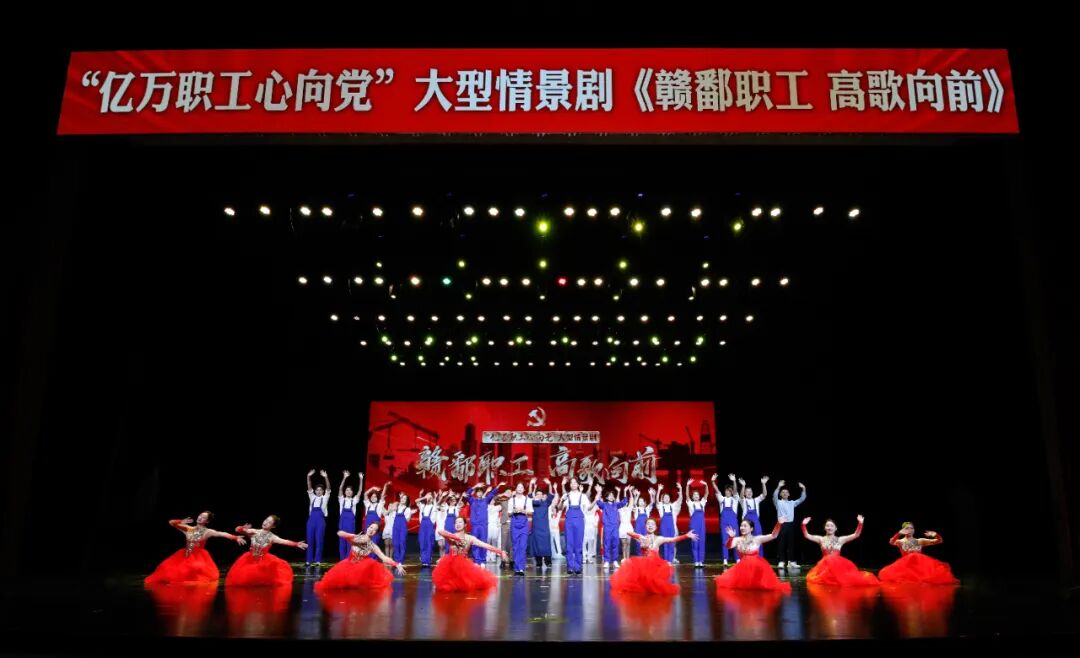 演出在欢快明朗的歌声中、在优美动人的舞姿中、在节目展现的广大赣鄱职工昂扬的精神风貌中,引领我市广大职工坚持以习近平新时代中国特色社会主义思想为指导,深入学习贯彻习近平总书记关于工人阶级和工会工作的重要论述以及习近平总书记视察江西重要讲话精神,深刻领悟“两个确立”的决定性意义,切实增强“四个意识”、坚定“四个自信”、做到“两个维护”,坚定扛起“忠诚党的事业、竭诚服务职工”的使命担当,团结引导我市广大职工坚定不移听党话、矢志不渝跟党走。