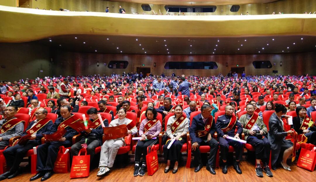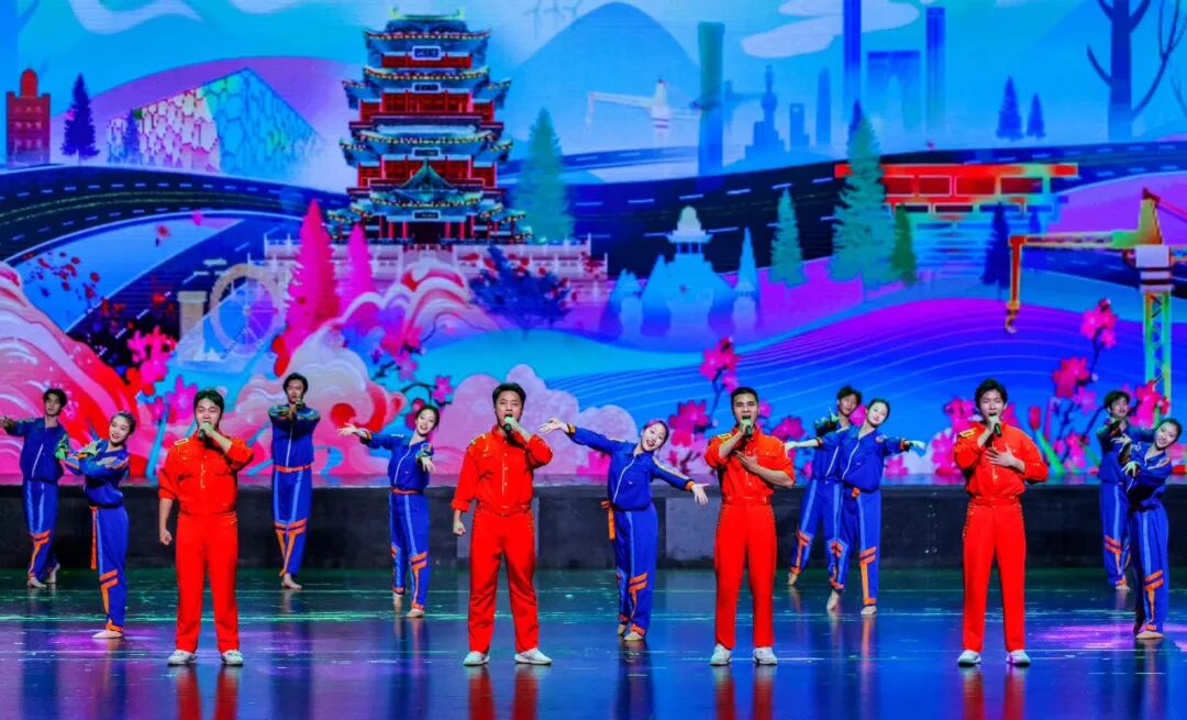 来自九江市各县(市)区总工会主席、各行各业的劳模工匠、产业工人、新业态劳动者等职工代表1100余人齐聚一堂共享文艺盛宴。伴随着九江市工人文化宫合唱团、九江市武警支队和各职工方阵热烈、欢快的拉歌氛围各级领导入场,就此拉开演出帷幕。